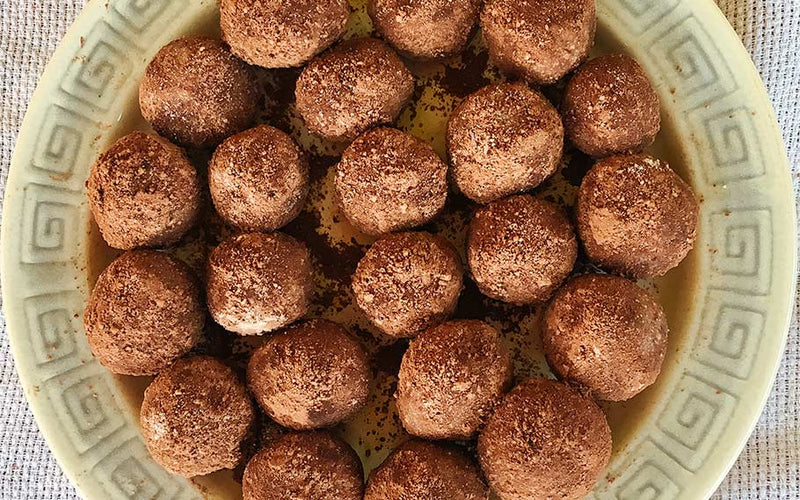 - With the mixture combined, form small balls. Place on a baking sheet and refrigerate for 1 hour. Cover in a Tupperware container and store in the fridge for over a week. Enjoy!