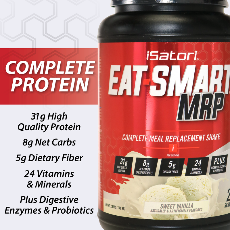 - 31g PROTEIN FOR DAILY HEALTH, LEAN MUSCLE, AND RECOVERY. EAT-SMART MRP contains high quality proteins from whey protein isolate, hydrolysates, concentrates, casein, and egg albumen. When combined, these sources offer both a fast- and slow- releasing supply of the amino acids needed to help support your immune system’s function, muscle recovery, nourishment, and help you build your best body.