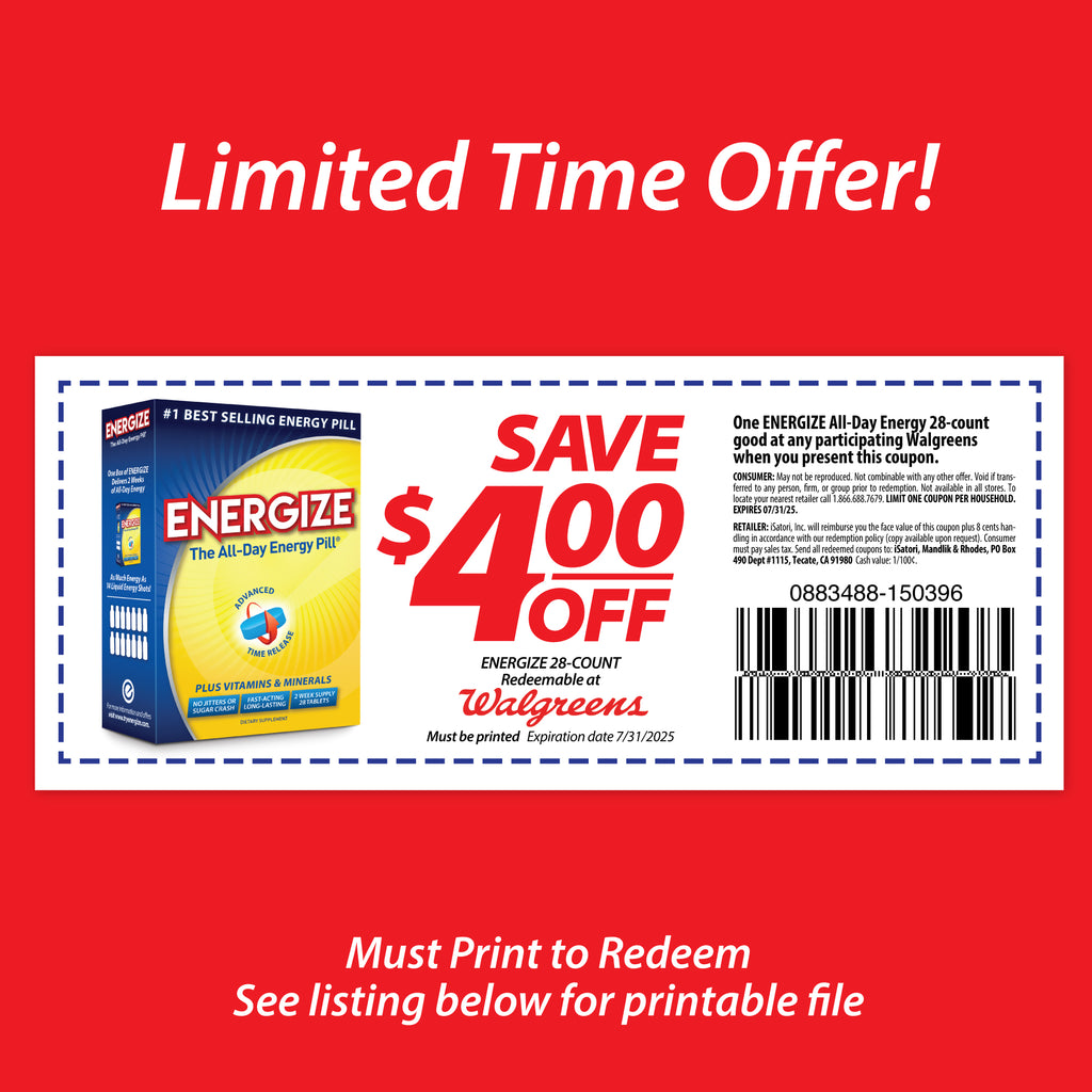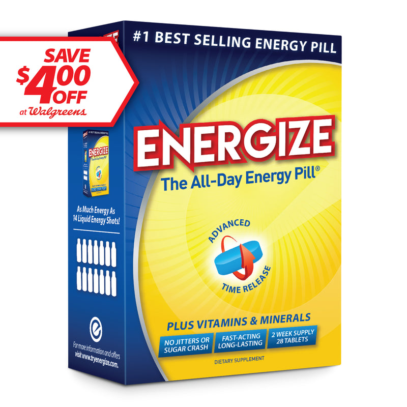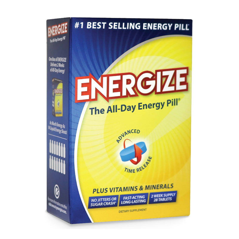 - All Day Energy: Energize is the #1 Selling Caffeine Energy Pill According to IRI Data. With its advanced time-release formula, you get energy throughout the day.